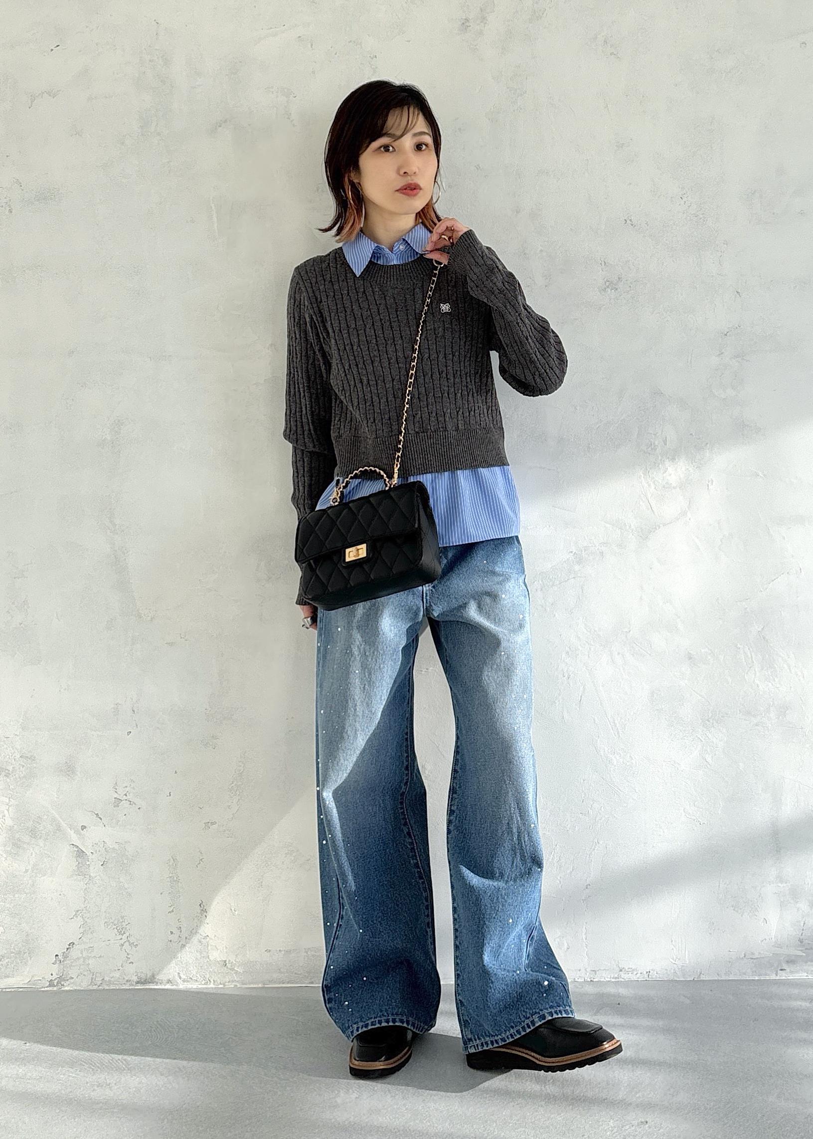 スリーブ釦アクセントリブニット/WEB限定FSサイズ・静電気防止