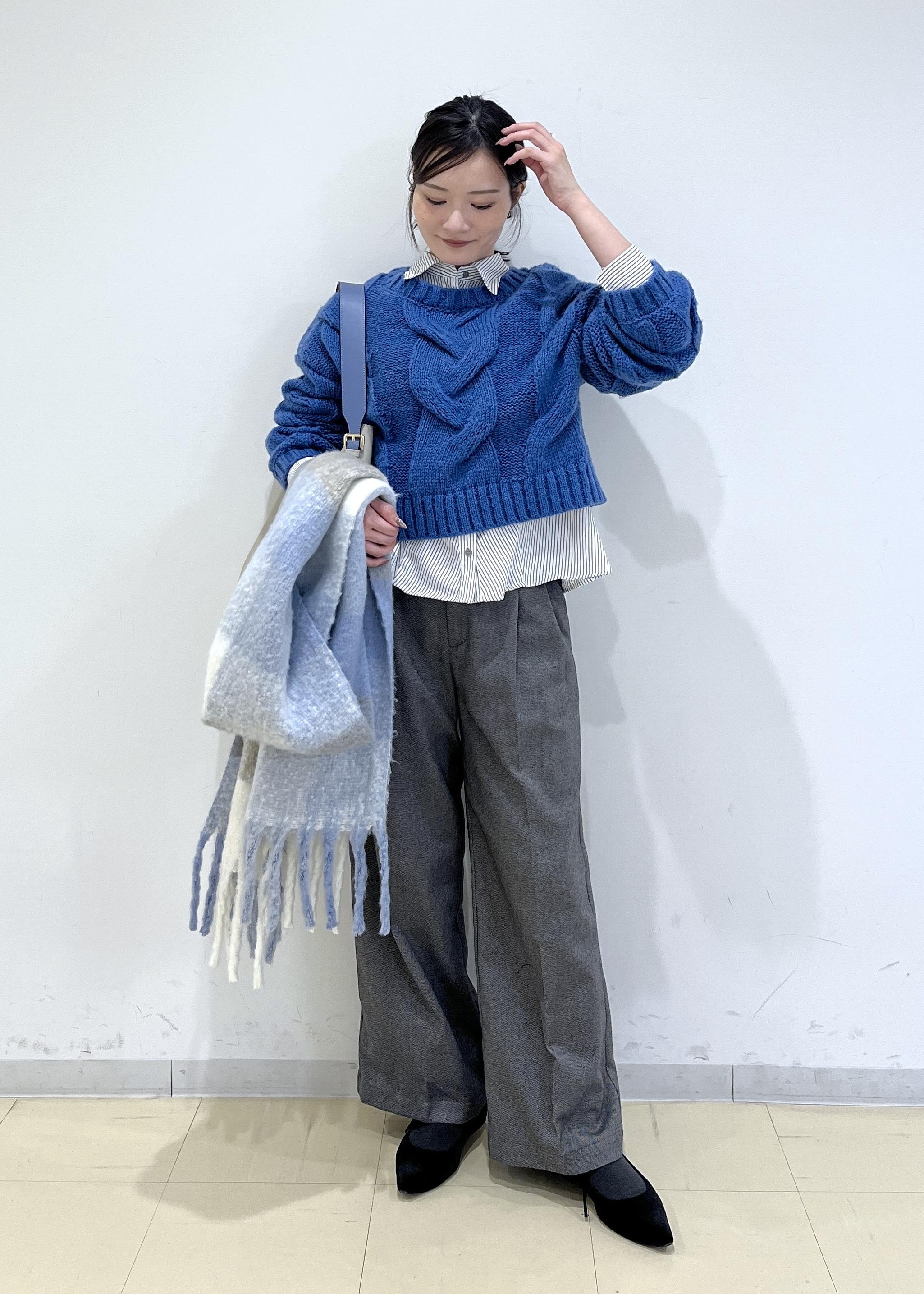 起毛ウールライク版ベルトディテールタックワイドパンツ