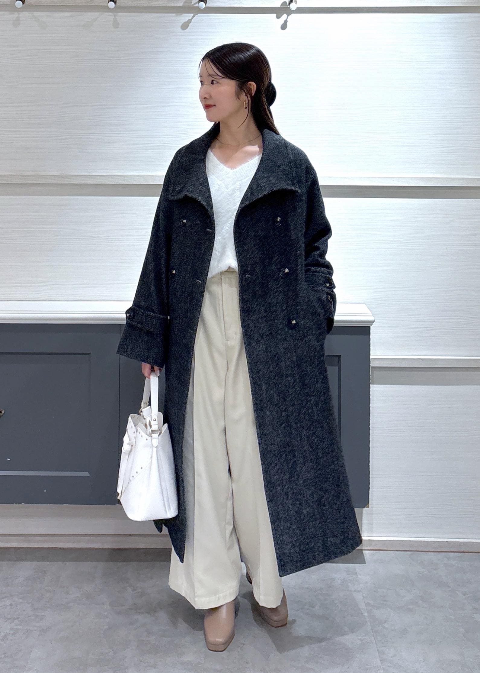 尾州シャギースタンドカラーロングコート/静電気防止・WEB限定PS・TMサイズ