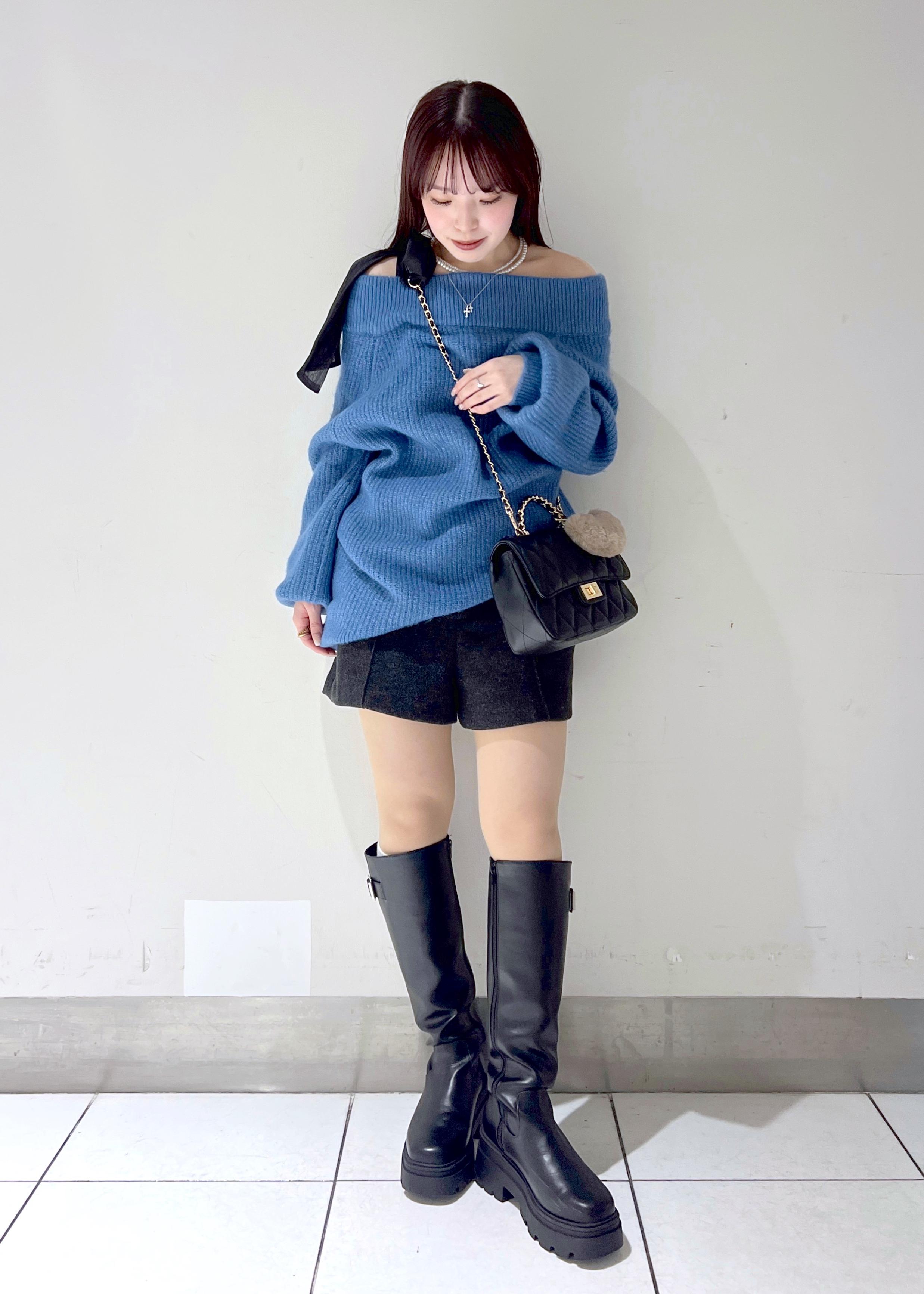 • 【美得】オフショルダーモチモチリブニット/好評につき再入荷