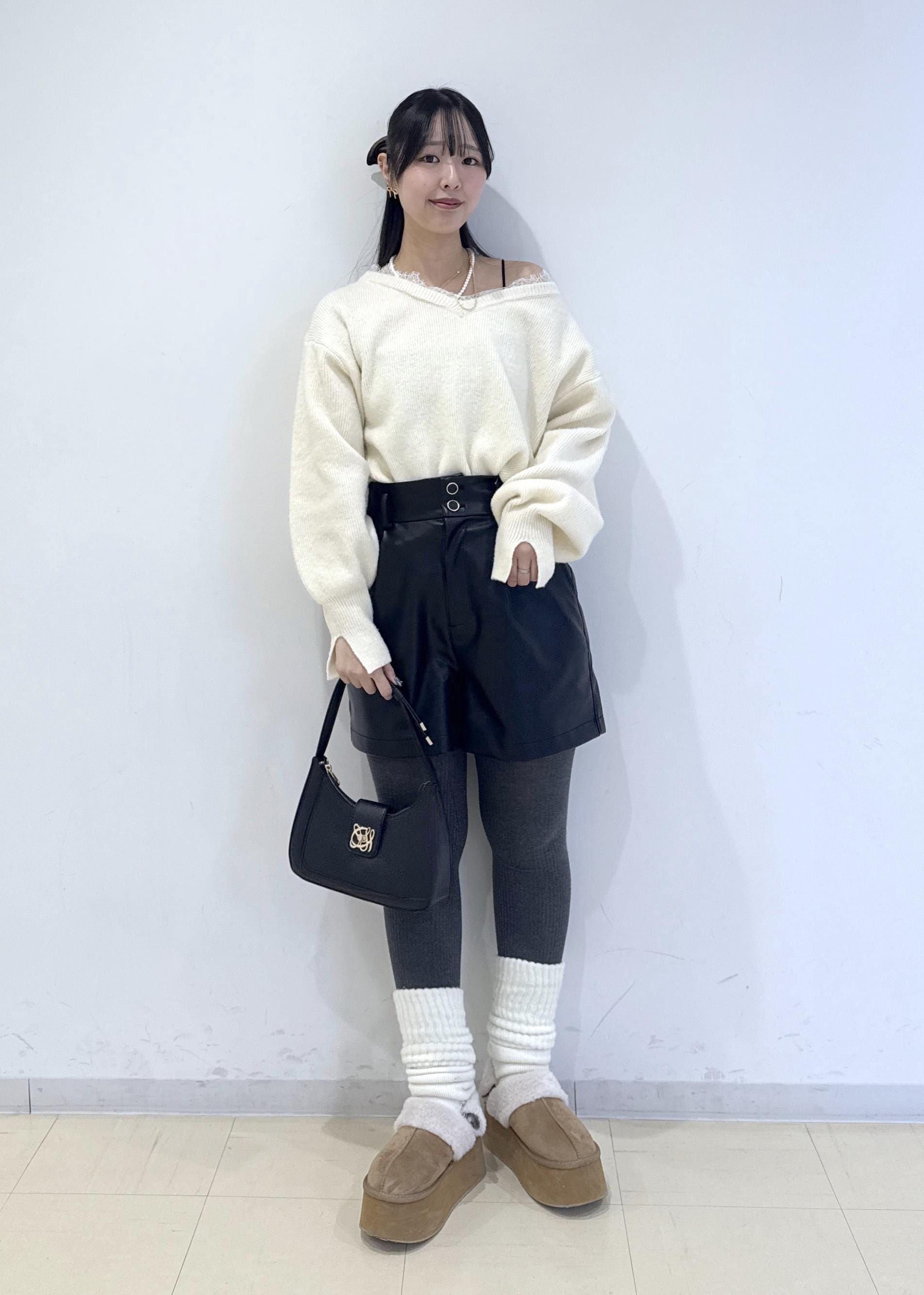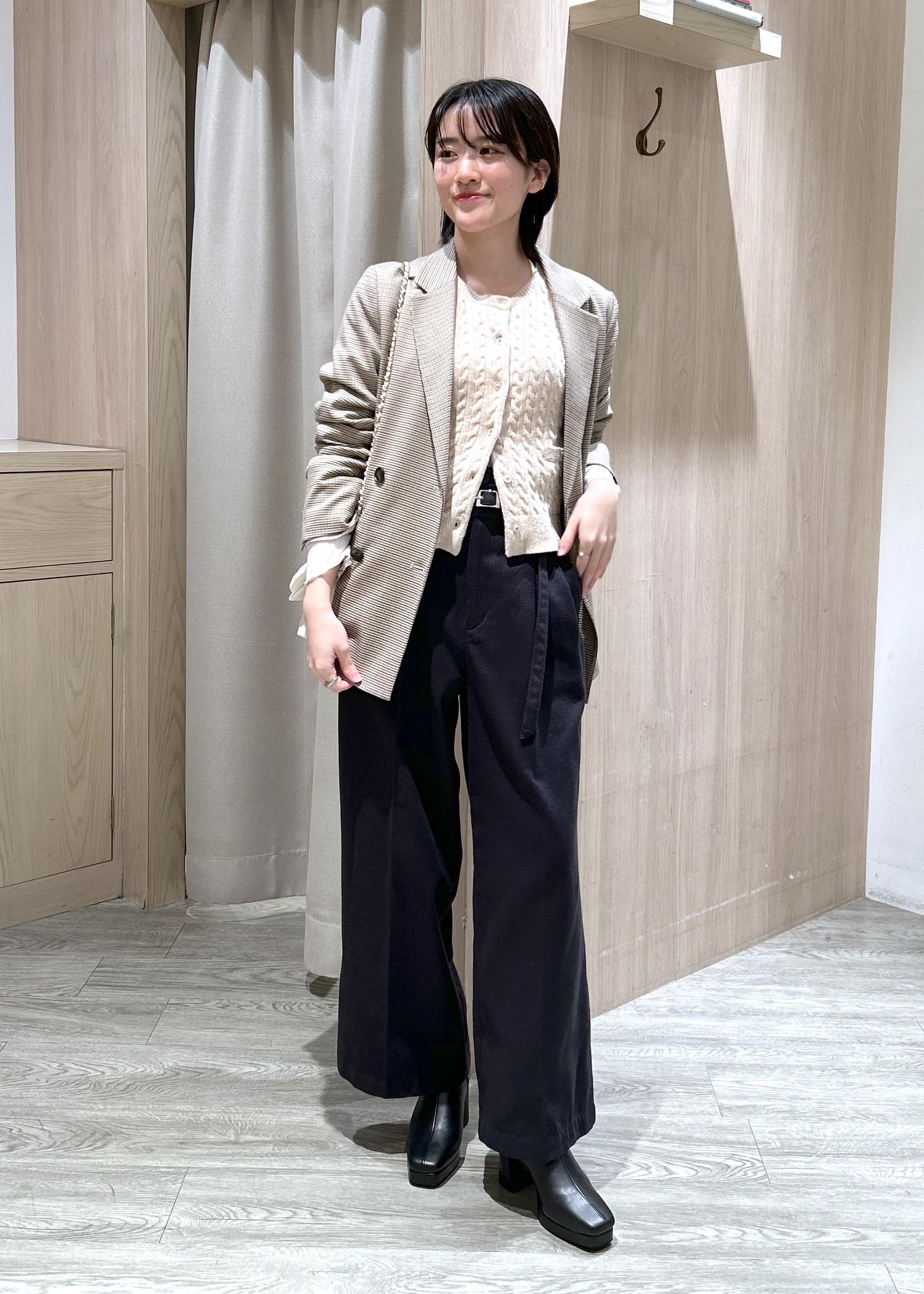 起毛ウールライク版ベルトディテールタックワイドパンツ