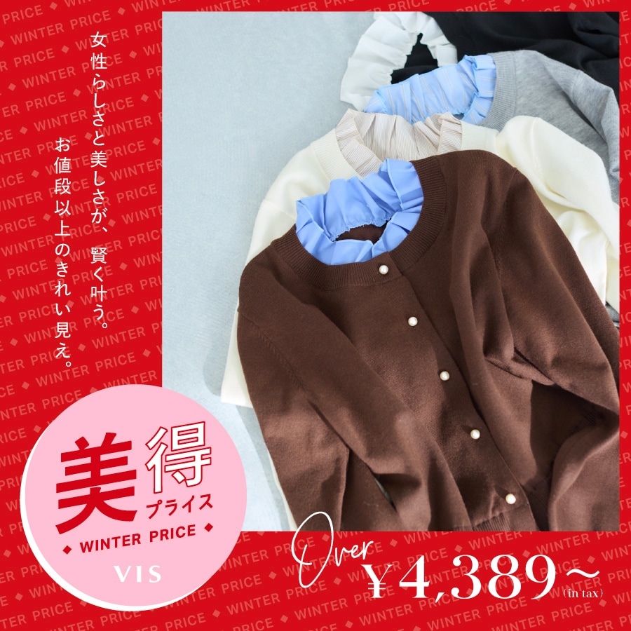 【美得】スリーブ釦アクセントリブニット/WEB限定FSサイズ・静電気防止