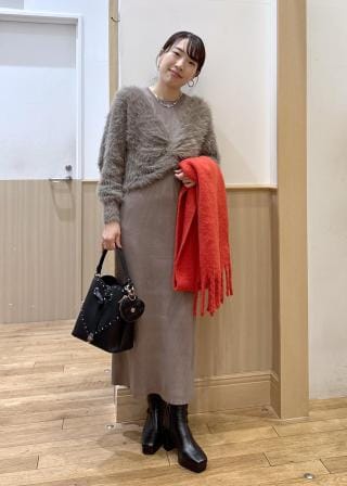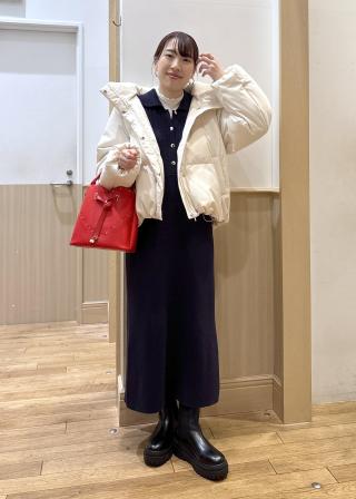 ミニbagのグリーンカラーと赤リップで少しクリスマスコーデを意識してみました。