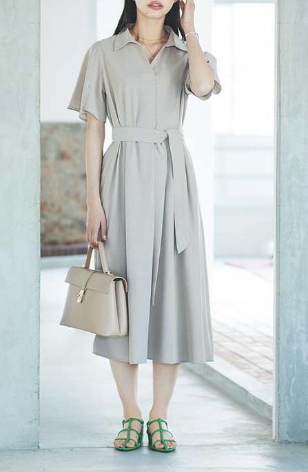 お手入れラクチンなリネンライクの涼しげなスキッパーワンピースです。