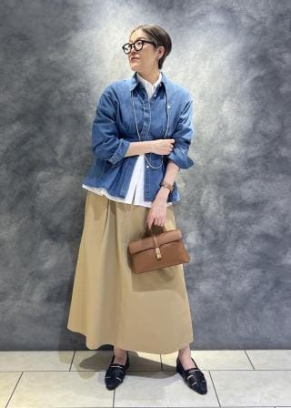 ゆるっとしたシルエットのデニムワンピースをメインに、アクセントでバッグはレモンイエローぽい華やかさをプラス!