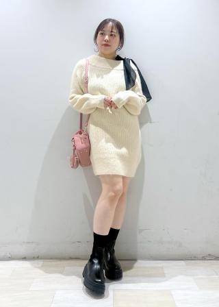 身長:155cm トレンドの横長バッグでデザイン性だけでなく軽量で量用も入り使いやすさ抜群です。