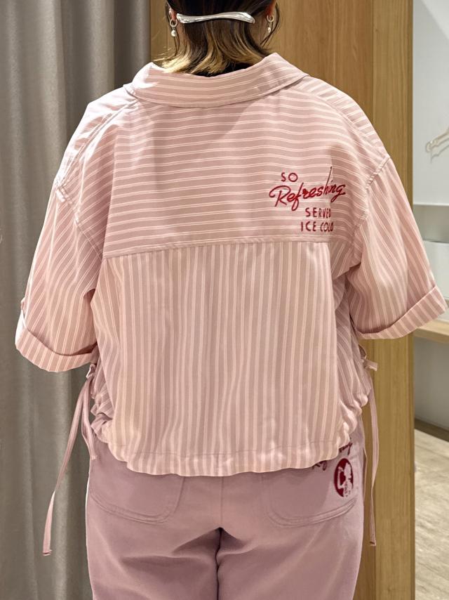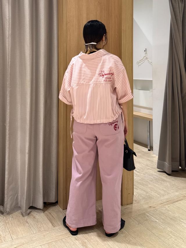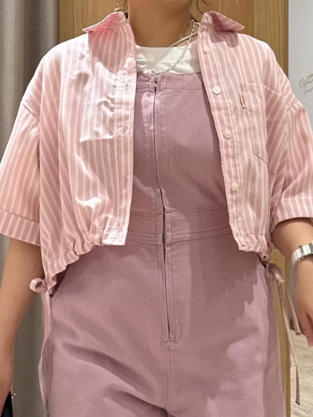 オールインワンとシャツは少し色味が違うピンクなので組み合わせも可愛く、一番のポイントはお尻と肩の部分の赤の刺繍です!