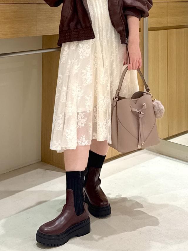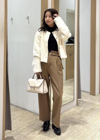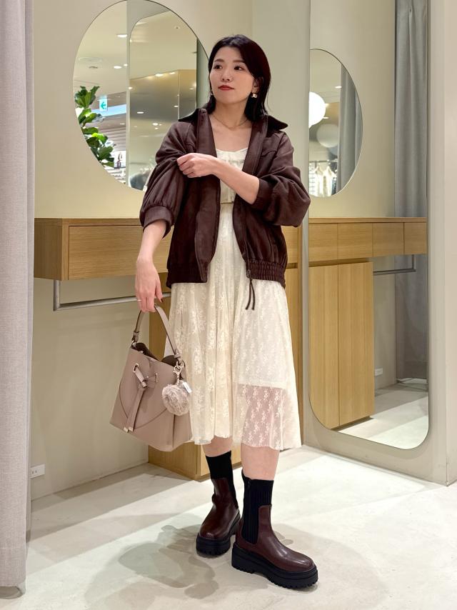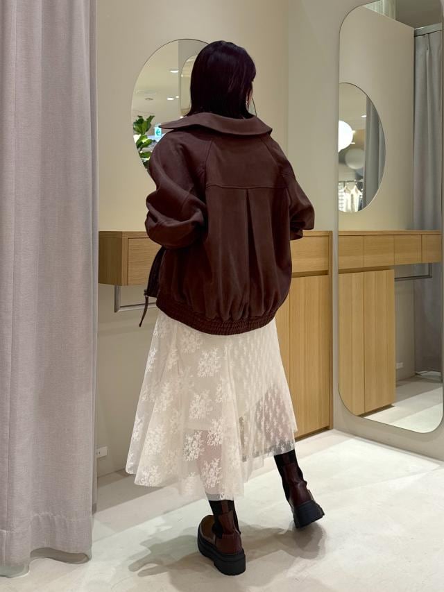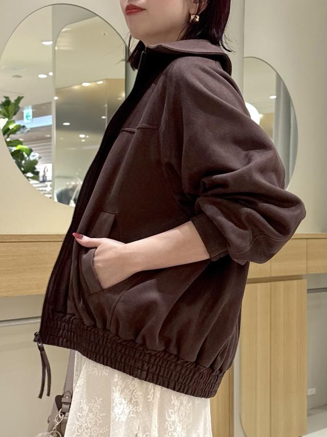 秋らしいブラウンのフェイクレザーブルゾンを羽織りました‼︎