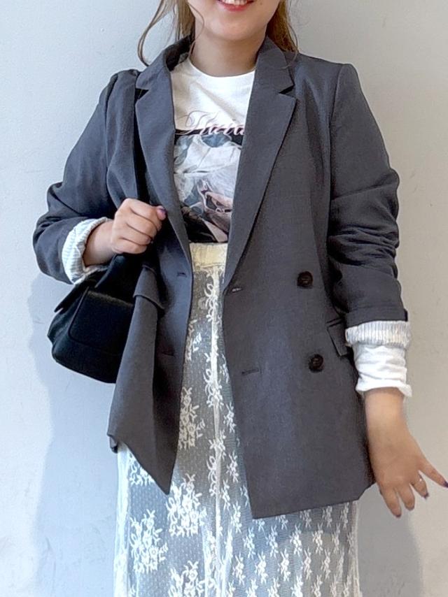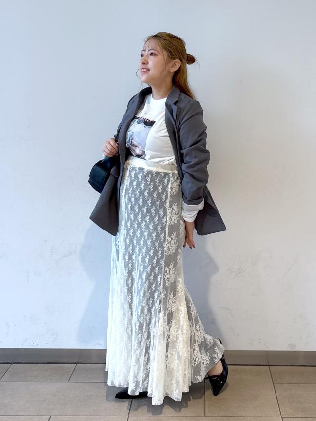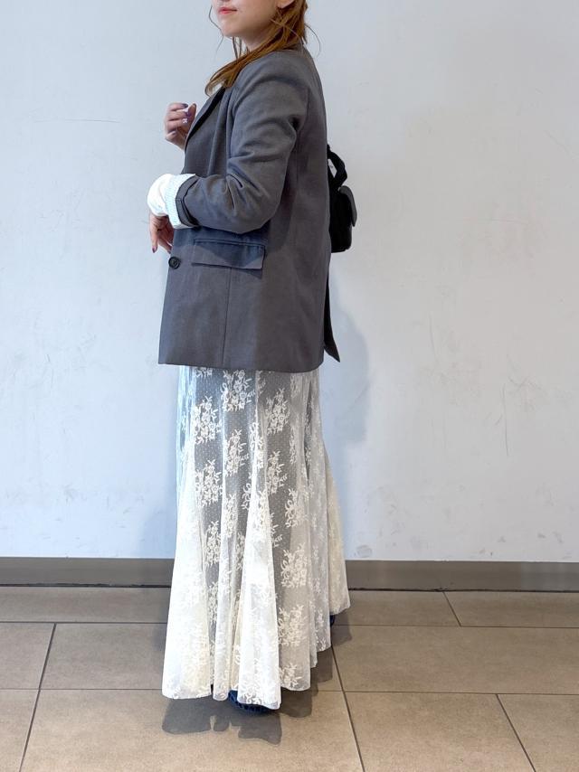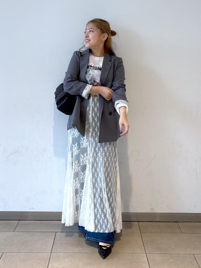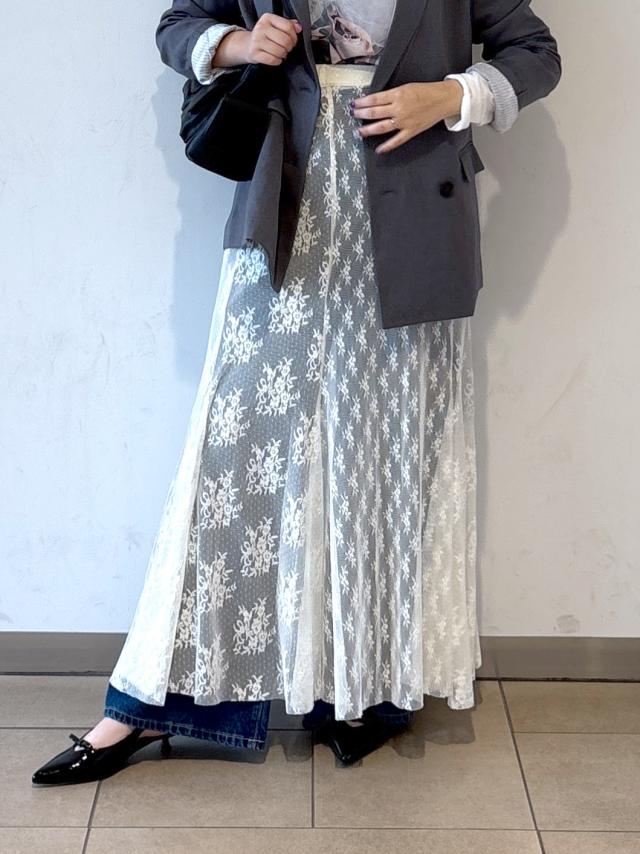 レースのスカートをデニムにレイヤードしたカジュアルコーデです!
