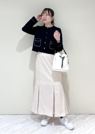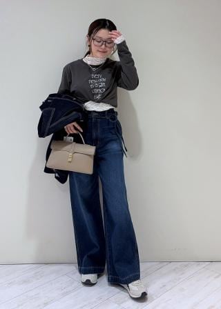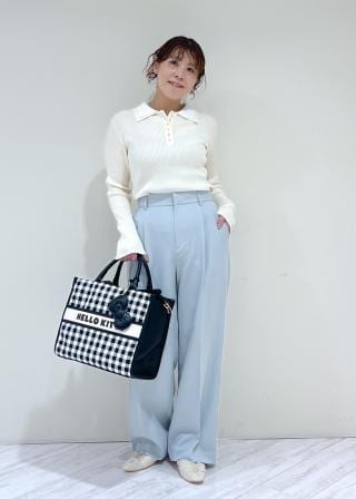 ニットカーディガン×ワイドパンツのシンプルなコーディネートですが、カーディガンのファーや赤のバッグが華やかさを演出してくれます!