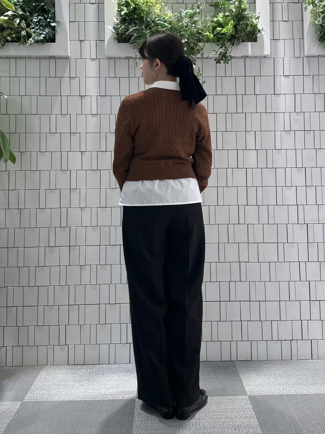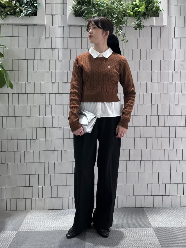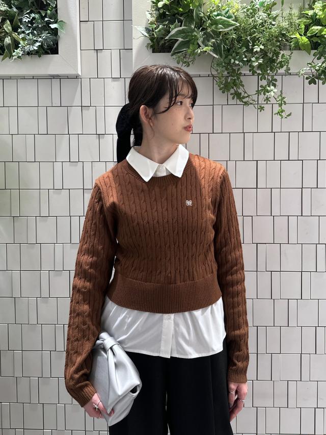 少しコンパクトなシルエットですが、伸縮性のあるケーブルニット素材なので窮屈感はなく着れました