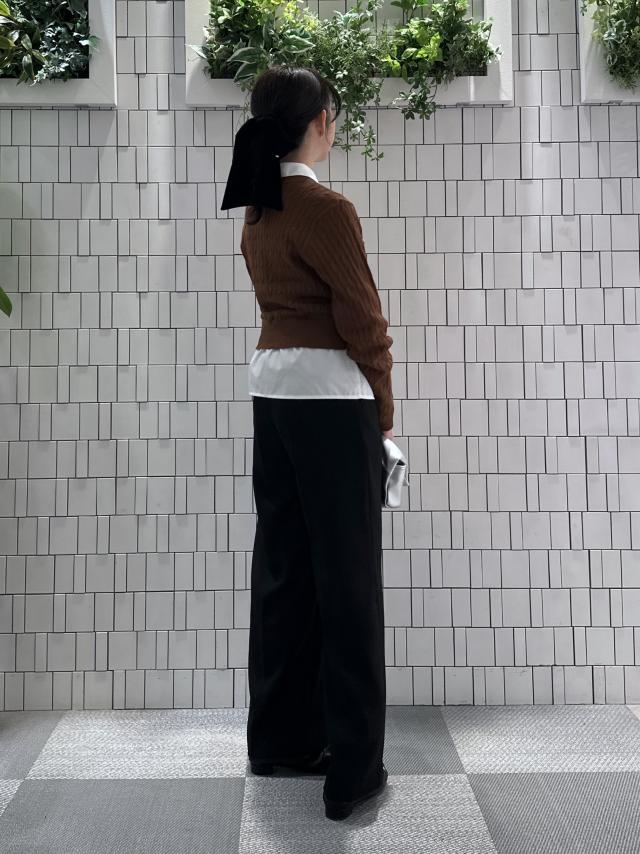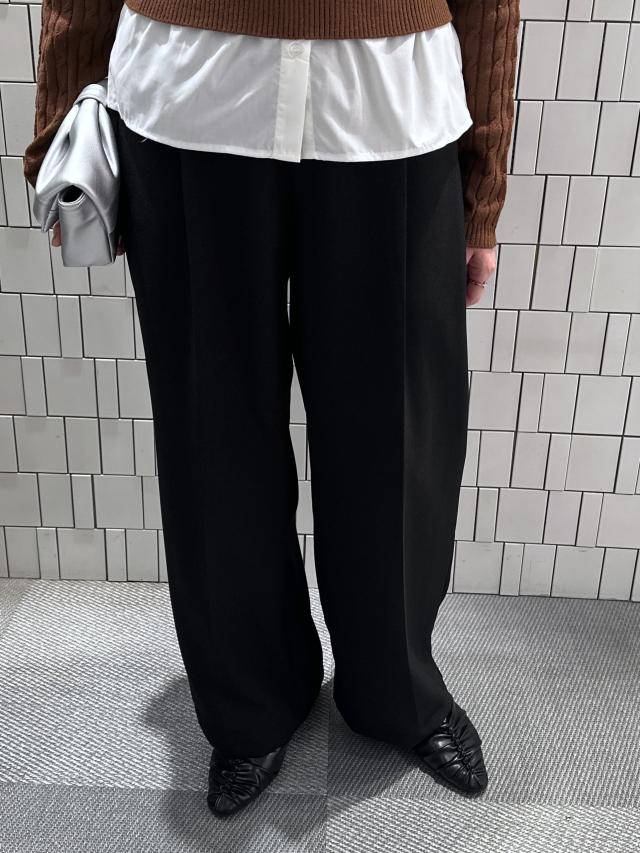ワイドパンツのつくりですが、通常よりストレートに近いシルエットなので、全体的にすっきりして見えます