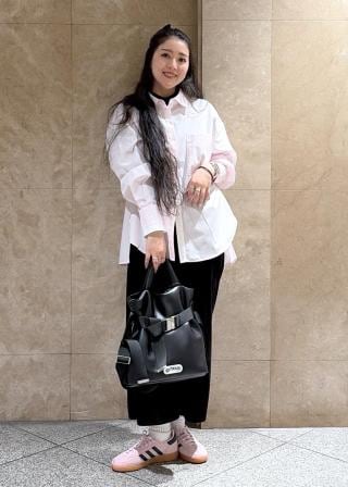 POLOシャツ×ワイドパンツ