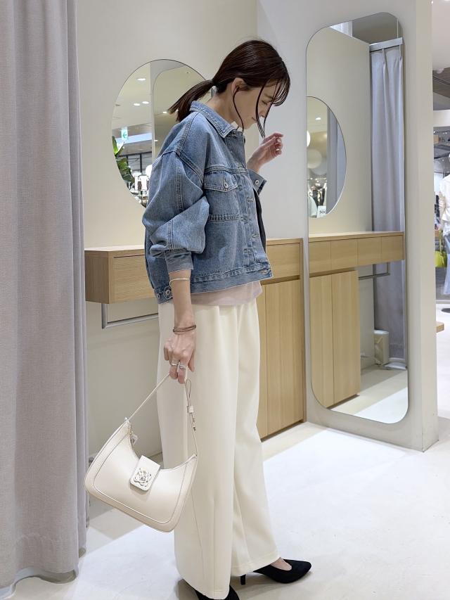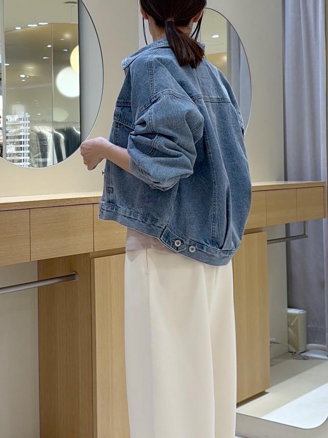 春の陽気にぴったりなピンクのトップスと王道のGジャンコーデ! 一気に季節感が出せます。