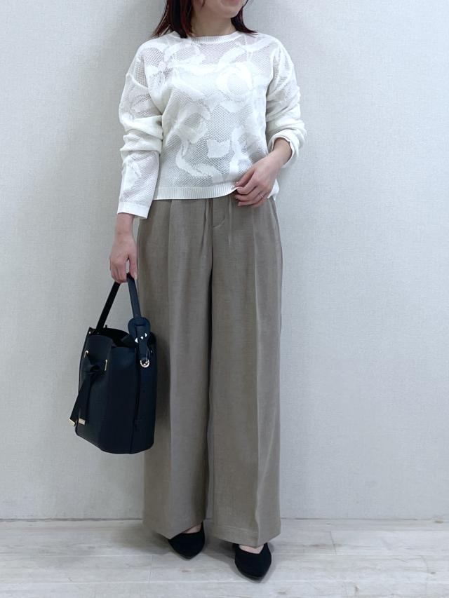 気温も上がってきたのでシアー系のトップスにサマーツイードパンツを合わせました。