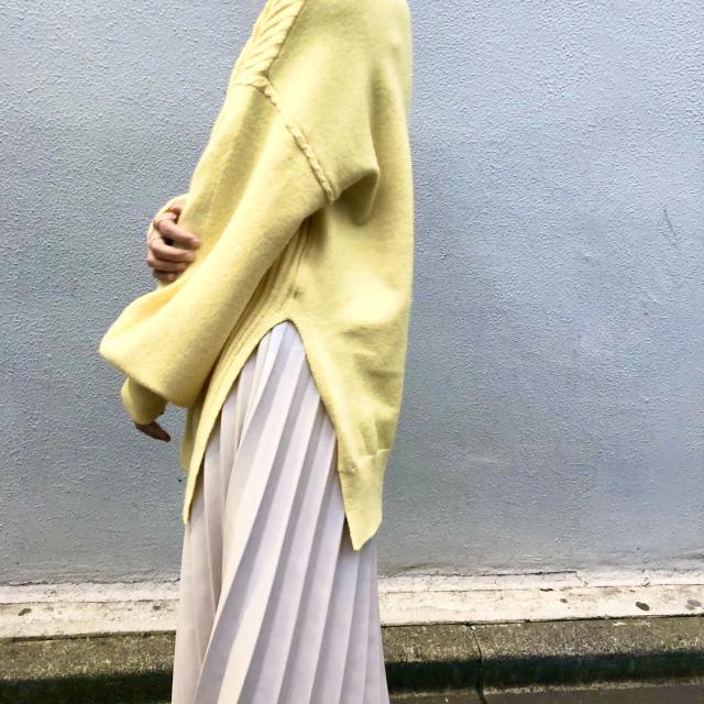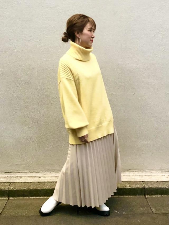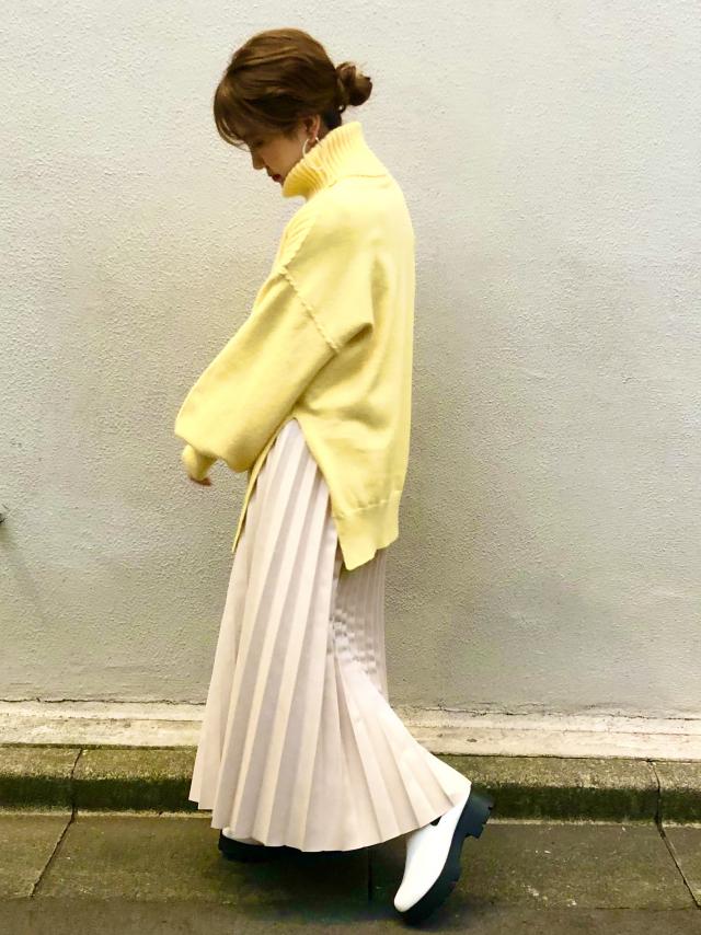 ゆるっと感のあるタートルニットはロングスカートやワイドパンツなどボリューム感のあるボトムと合わせるのがオススメです◎