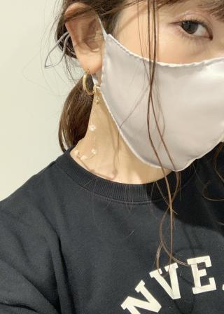 マスクの両サイドに金具を付けて首にかければ上品な女性らしいイメージに。
