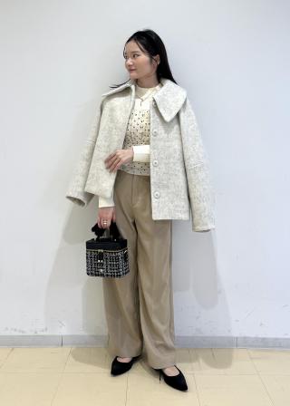 Y字のシルエットで女性らしい顔まわりとデコルテを演出。
