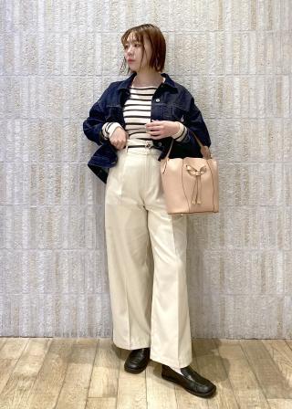 ハイゲージニットや首回りが開いたトップスと合わせて頂くのがおすすめです。