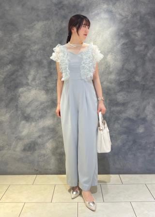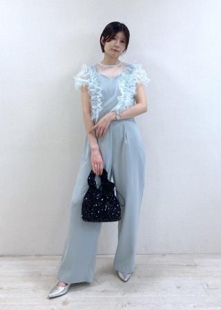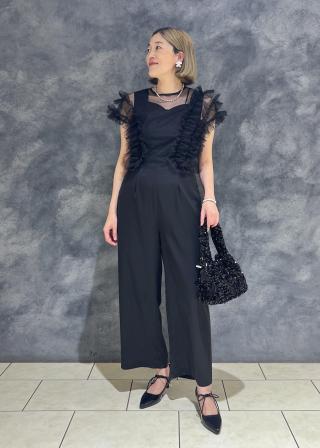 チュールのフリルトップスとサロペットをセットにしたトレンド感満載のサロペット。