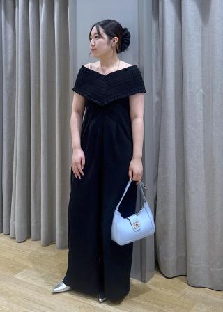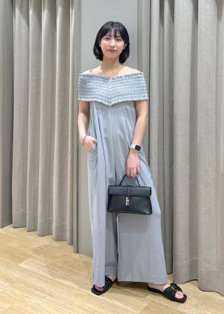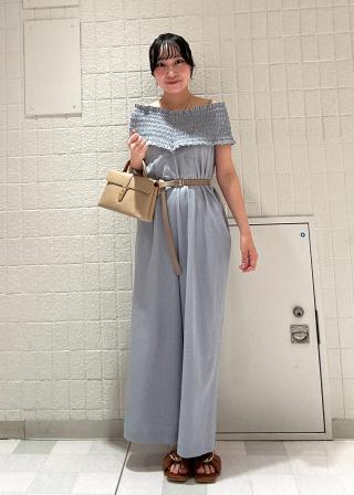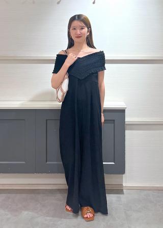シャーリングオフショルダーオールインワン