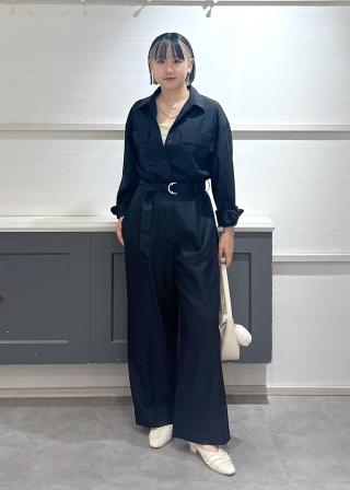 スタイリッシュなデザインとカジュアルさを兼ね備えたオールインワン。落ち感のある素材で着心地も◎