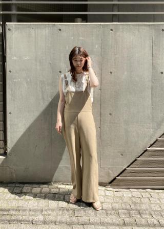 少し広がったフレアーシルエットで子供っぽくなりがちなサロペットも大人っぽく着こなせます。