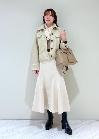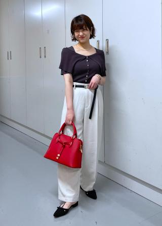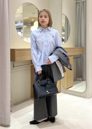 ・フロントのリボンが優し気な印象を添えつつ、甘すぎないデザインだからオフィスにも◎。
