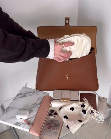 ・長財布、500mlペットボトル、折りたたみ日傘が入る大きさ。
