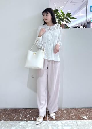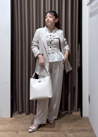 平日はワンショルダーで、きれいめなブラウスやスカート、ジャケット&パンツに合わせた、オフィス・通勤スタイルに。