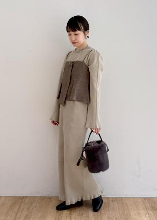 筒形シルエットに、巾着口の出し入れがラクちんで、荷物もしっかり収まるふわふわバッグ。