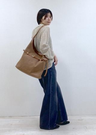 少し容量のあるバッグを探していて、デザインも気に入って購入しました!届いてみて軽いし、肩がけにもできて買ってよかったです。デニムでカジュアル、キレイめにスタイリッシュにもどちらでも合うので季節選ばす使えそうです✨