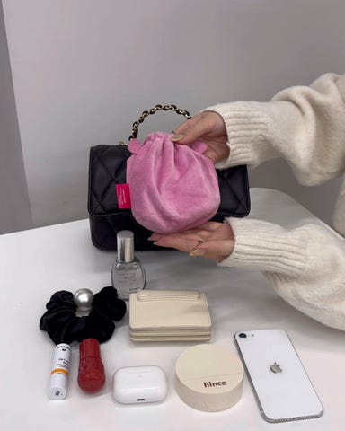 二つ折り財布やスマホ、ポーチが入る大きさです。
