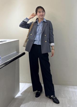裏地がストライプなので、袖は曲げて敢えて裏地を見せるスタイリングもおすすめです◎