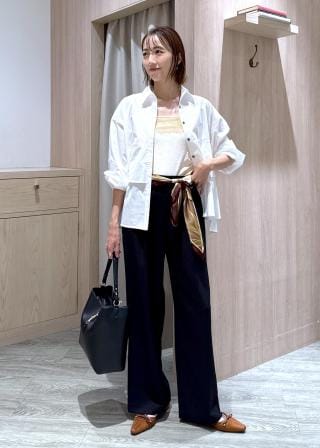 コーデを明るくしてくれるオフホワイト(ブラウンのコバ色でこなれ感UP)