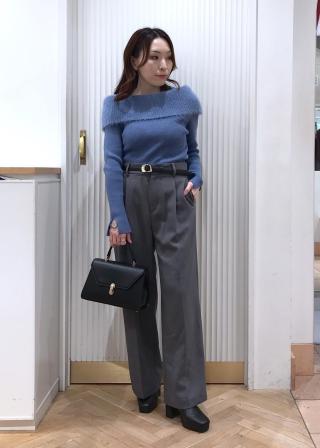 ちょっと細めのベルトでゴールドのワンポイントが効いていて何にも合わせられます。
