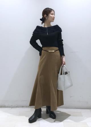 ハイウエストボトムやワンピースとも相性が良く、スタイルアップ見えも◎。