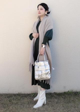 ぐるぐる巻けるロング丈なので、防寒機能もバッチリ。