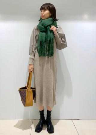 ふんわりとした素材感とたっぷりのボリューム感が特徴のマフラー。