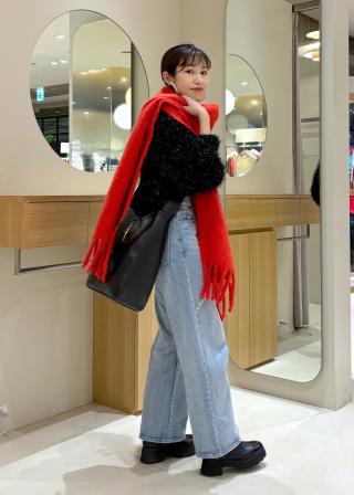 フワフワな素材感で顔周りを華やかに見せてくれるマフラーです♪
