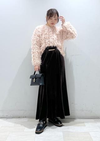 ベロア素材で少し甘めに感じるかと思いましたが、ワンポイントがボールなのでカジュアルさも感じ使いやすいです◎