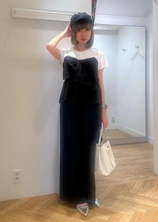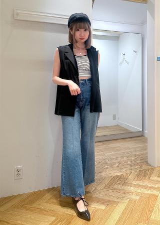 形が可愛くて、カジュアルにもキレイめにも合わせやすいです。中で調節するので、紐などが見えなくて嬉しい◎