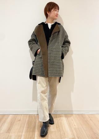 以前リバーコートはチェックのロングをUPしましたがウール混の軽いコートハーフ丈ver.です。