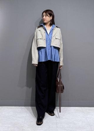 短丈なのでボリュームのあるボトムとも相性が良いです。