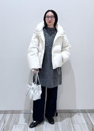 パンツスタイルでも絶妙な丈感でバランスよく着用いただけるダウンです。