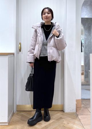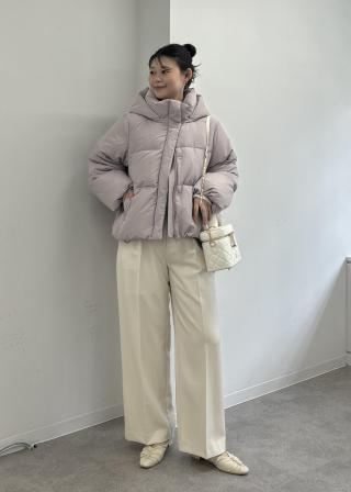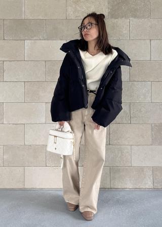 ボリュームのあるアウターをショート丈にすることで、バランスよくスタイルアップも叶う冬のコーディネートです。