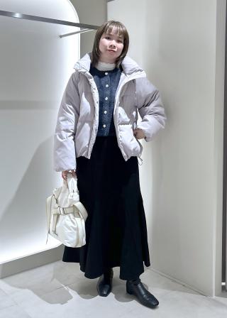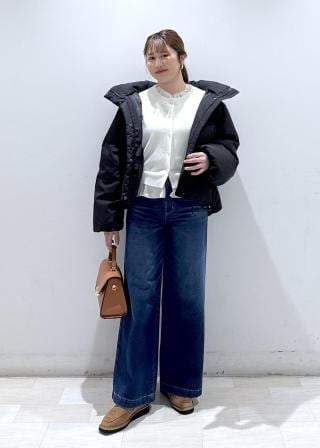 ボリュームのあるアウターをショート丈にすることで、バランスよくスタイルアップも叶う冬のコーディネートです。