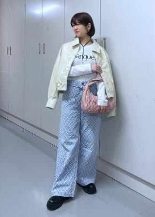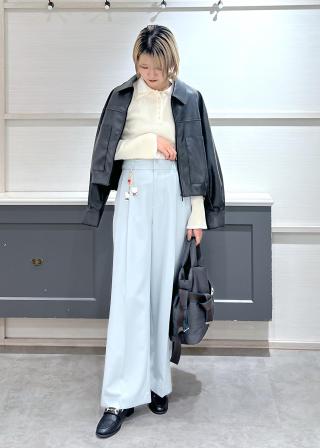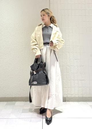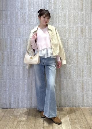 インナー選ばず着用できますが、ボトムにはデニム、インナーにボウタイアイテムを合わせてメリハリのある大人の女性らしいスタイリングがおすすめです。