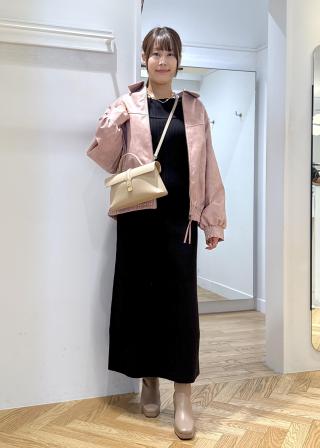 実際に店舗で見たらピンクもくすみピンクで全然浮かない。むしろ秋冬のダークトーンなカラーの服装が多いなか、カーディガン感覚で羽織れて気分もあがる!