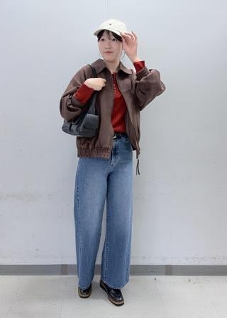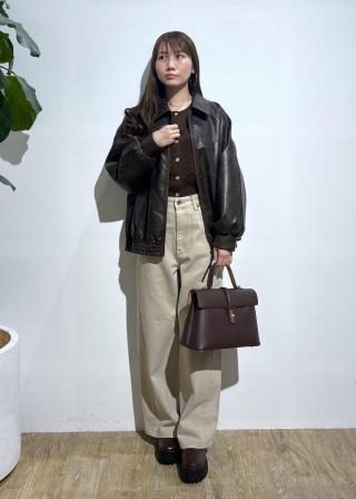 合皮はヴィンテージライクな加工を施しておりシーズンらしいイメージに。アウターでトレンド素材を取り入れてワンランクアップのスタイリングが叶います!